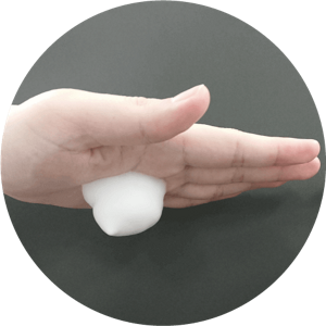 肌を濡らしたあと、適量の泡を手に取り、やさしく包み込むようにして洗います。