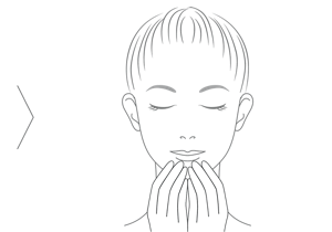 両手のひら全体で、矢印の順にやさしくなじませます。 ※2回繰り返し