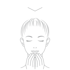 口元は指の腹全体で口の上、口の下の順にプレスします。